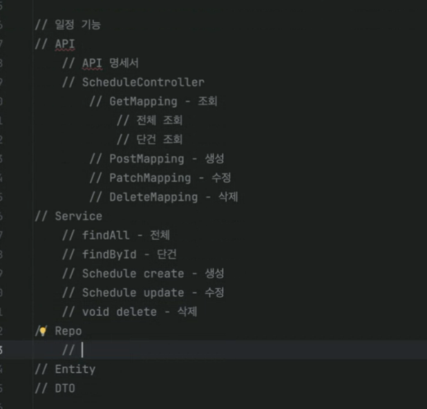 POST인지 GET인지 DELETE인지를 생각하고, 반환형을 생각하며 살을 붙여나가면 설계 이후에 수월하게 개발이 가능하다.