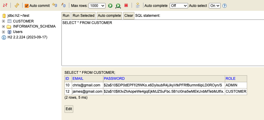 - application.yml에 정의한 datasource의 계정 정보를 입력합니다.