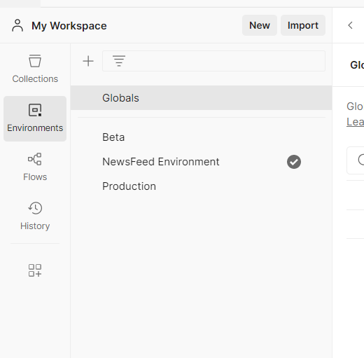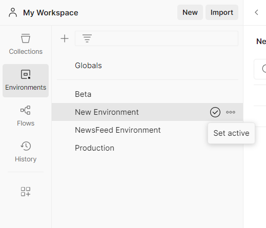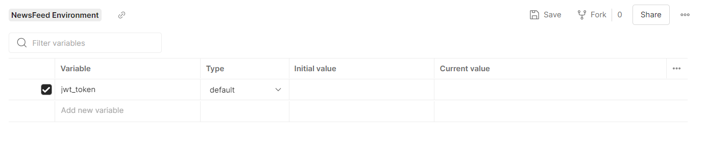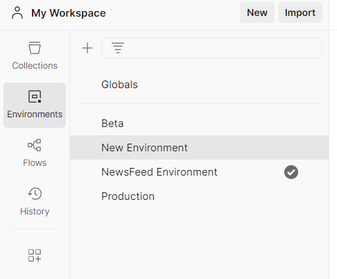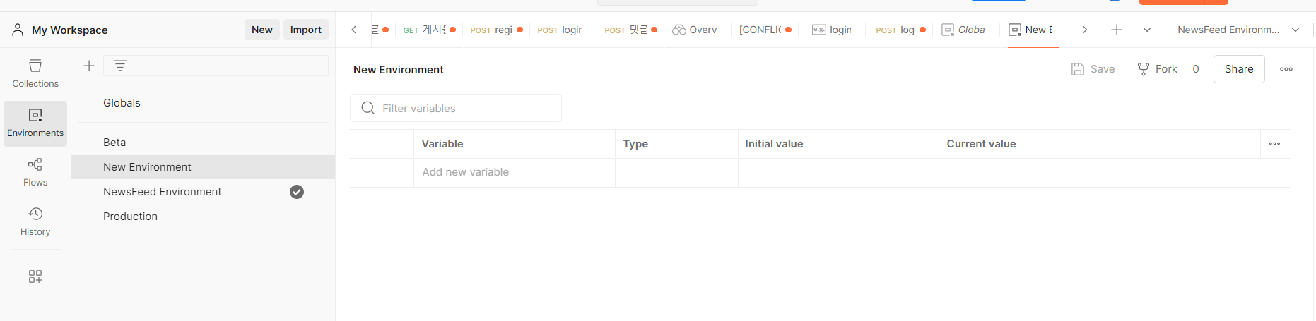 나는 이미 환경변수를 설정해둬서 NewsFeed Environment가 존재하는 상황이다.