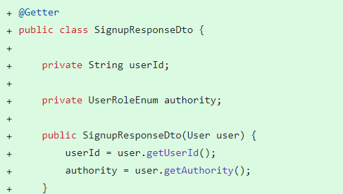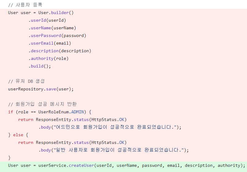 기존에는 return값을 authService.signup으로 보내주었는데, service에서 생성된 유저의 권한을 반환받아 메시지를 컨트롤러에서 처리하도록 수정했다.