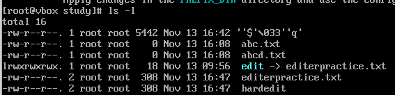 -rw-r--r--. 1 root root 0 Nob 13 16:08 abc.txt