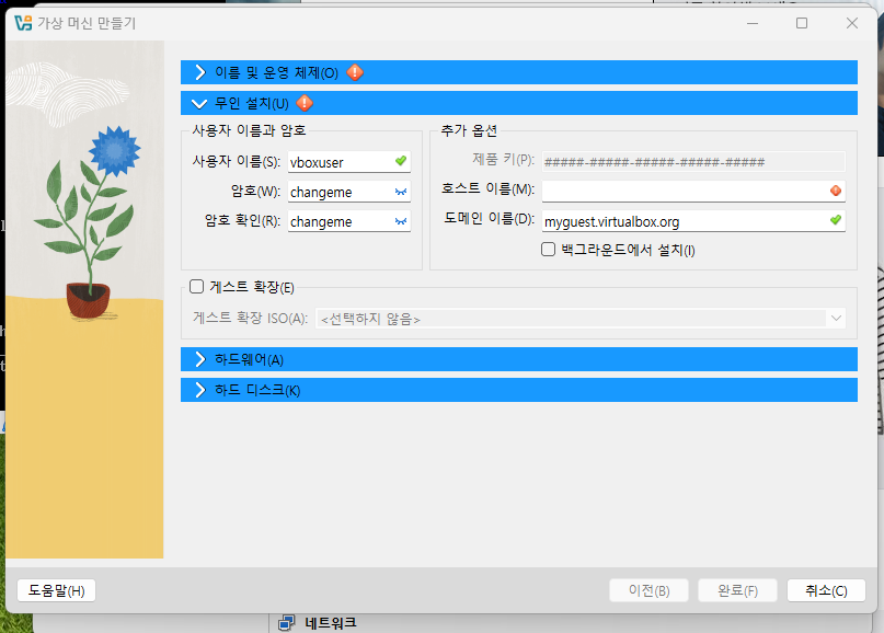 무인 설치에서 사용자 이름/암호 설정