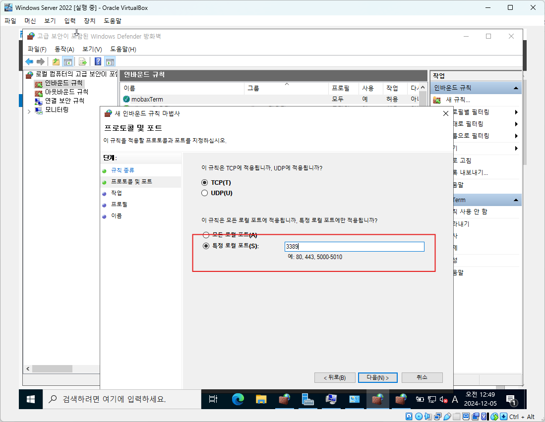 2) 방화벽에서 원격 데스크톱 포트 허용